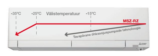 Paljude turul pakutavate õhksoojuspumpade küttevõimsus väheneb, mida madalamale välistemperatuur langeb. MSZ-RZ on seevastu spetsiaalselt loodud põhjamaa karmide kliimatingimuste jaoks ja kannab seetõttu kvalteedimärgist „Made for Scandinavia“.